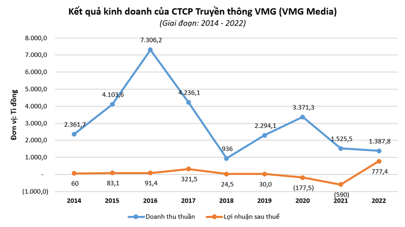 Lũy kế cả năm 2022, lợi nhuận sau thuế của VMG Media đạt 777,4 tỉ đồng. Kết quả này giúp VMG Media xóa lỗ lũy kế, vốn chủ sở hữu đảo chiều từ âm 227 tỉ đồng hồi đầu năm thành dương 550,3 tỉ đồng tại thời điểm 31/12/2022.
