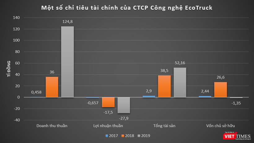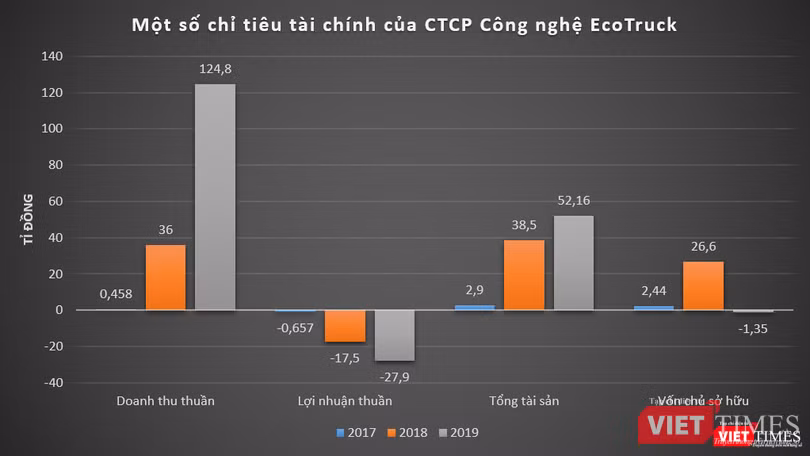 Dữ liệu của VietTimes cho thấy, doanh thu của của EcoTruck tăng trưởng mạnh sau khi nhận vốn đầu tư vòng Pre Series A. Cụ thể, năm 2019, EcoTruck ghi nhận doanh thu thuần đạt 124,8 tỉ đồng, gấp gần 3,5 lần so với năm trước; lỗ thuần ở mức 27,9 tỉ đồng, trong khi năm 2018 lỗ 17,5 tỉ đồng.