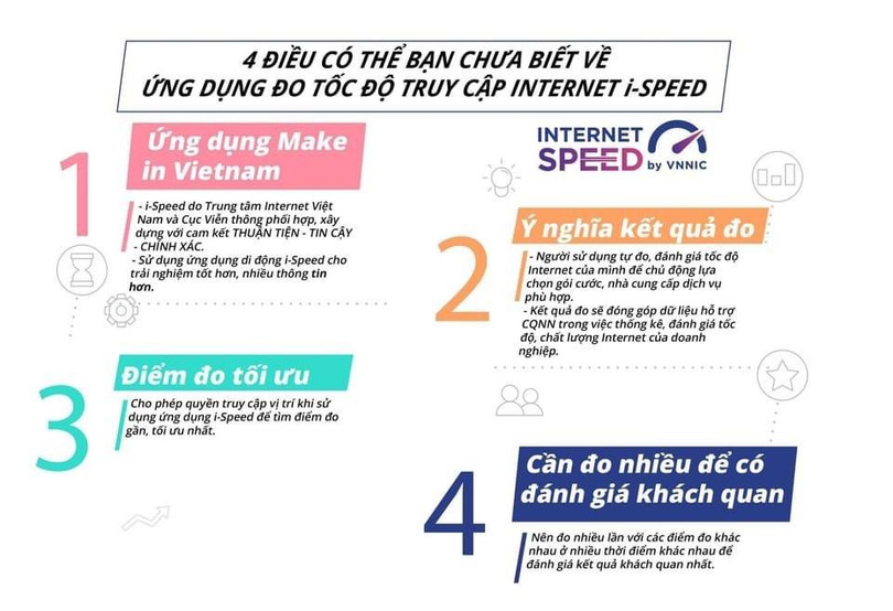 Trung tâm Internet Việt Nam (VNNIC) cũng cho biết, việc này nhằm thúc đẩy việc cài đặt, sử dụng ứng dụng i-Speed by VNNIC đo tốc độ truy cập, trải nghiệm người dùng Internet.