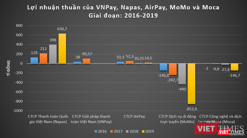 Theo dữ liệu của VietTimes, năm 2016 và 2017, doanh thu thuần của VNPay lần lượt đạt 3.063 tỉ đồng và 5.100 tỉ đồng, lãi thuần ở mức 38 tỉ đồng và 99 tỉ đồng. Biên lợi nhuận dù còn khá hạn chế, chỉ 1-2%, nhưng nên nhớ rằng đã là kết quả rất ấn tượng, nếu so sánh với các doanh nghiệp công nghệ cung cấp dịch vụ trung gian thanh toán đang vật lộn trong thua lỗ hiện nay.
