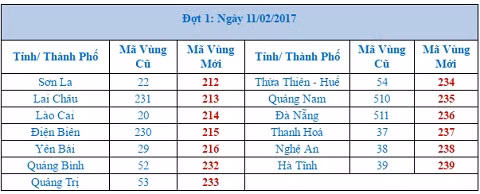 Riêng 4 tỉnh Vĩnh Phúc, Phú Thọ, Hòa Bình và Hà Giang được giữ nguyên mã vùng.