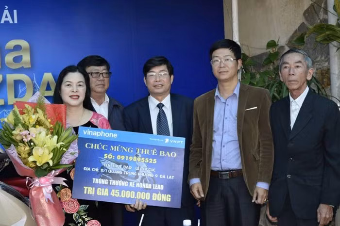 Theo đó, khách hàng Lê Thị Cúc, CBCNV Trường Đại Học Đà Lạt đã may mắn trúng thưởng xe Honda Lead trị giá 45 triệu đồng. Trung tâm Kinh doanh VNPT Lâm Đồng tổ chức trao giải ngay tại nhà khách hàng dưới sự chứng kiến của phó chủ tịch UBND phường 9, TP Đà Lạt và tổ trưởng tổ dân phố.