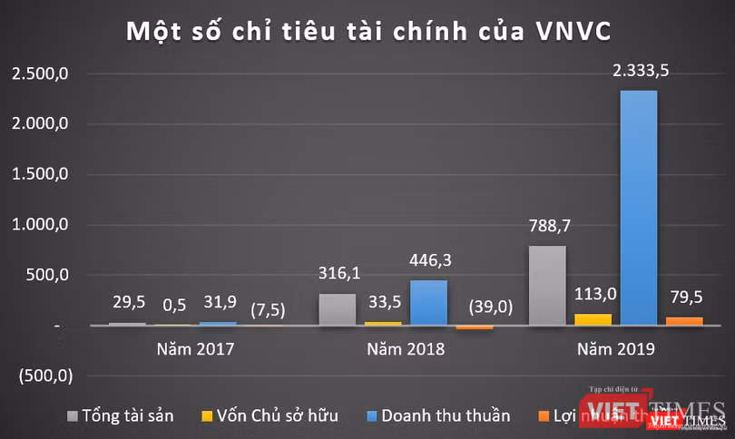 Bước sang năm 2019, VNVC ghi nhận sự bùng nổ về cả doanh thu và lợi nhuận. Cụ thể, công ty này ghi nhận doanh thu thuần đạt tới 2.333,5 tỷ đồng, cao gấp 5 lần so với năm 2018. Trong khi đó, hoạt động kinh doanh cũng chuyển sang có lãi với khoản lợi nhuận thuần ở mức 79,5 tỷ đồng. Hệ số lợi nhuận thuần trên vốn chủ sở hữu của VNVC lên tới 70,35%.