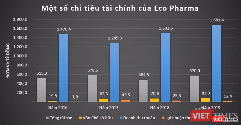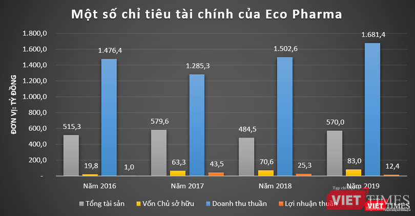 Trong 4 năm gần nhất, Eco Pharma ghi nhận sự tăng trưởng về doanh thu và liên tục báo lãi. Năm ngoái, Eco Pharma thu về 1.681,4 tỷ đồng, tăng 11,9% so với năm 2018. Điều đáng nói, nguồn doanh thu mà Eco Pharma đem lại mỗi năm đều gấp nhiều lần quy mô vốn chủ sở hữu.