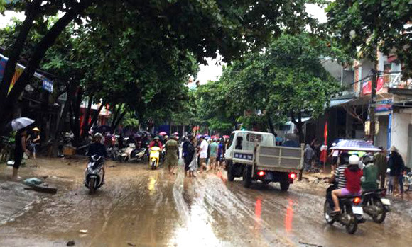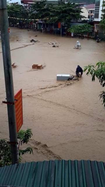Anh Tuấn Nam chứng kiến sự việc cho biết: sau nhiều giờ mưa lớn, khi mở cửa nhà ra, tôi thấy nước cuồn cuộn trước cửa, chẳng mấy chốc cả thị trấn ngập chìm trong nước. Dòng nước hung dữ cuốn trôi hết tài sản, nhiều xe đạp điện, xe máy bị cuốn trôi...
