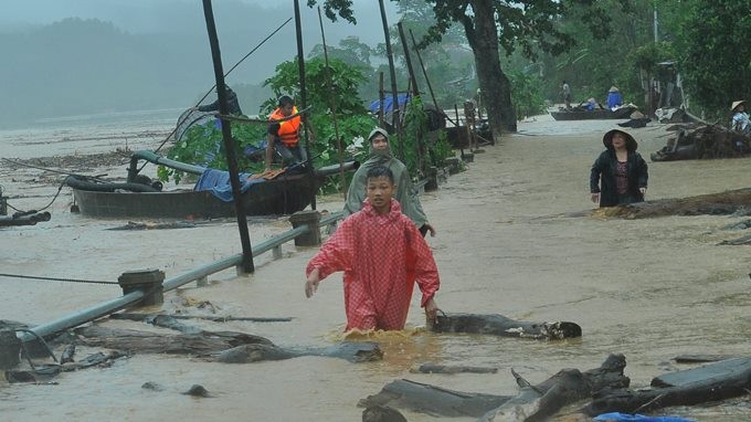 Chứng kiến cảnh nước lũ tràn xuống thị trấn nhiều người dân hốt hoảng, nhưng có không ít người lợi dụng cảnh thiên tai, cố tình lao vào dòng nước lớn để vớt xe máy, xe đạp.