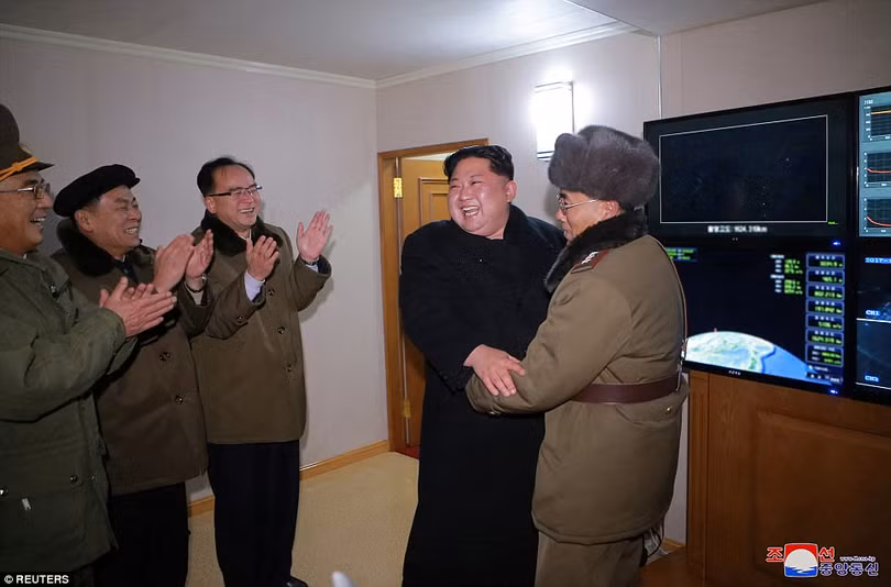Người phát ngôn của Hội đồng tham mưu trưởng liên quân Hàn Quốc, Roh Jae-cheon cho rằng cần nghiên cứu thêm về sức mạnh của Hwasong-15. Nhưng ông này nói thêm rằng Triều Tiên đã có những bước tiến quan trọng kể từ khi phóng Hwasong-14. Ảnh: Ông Kim Jong-Un đang theo dõi vụ thử tên lửa.