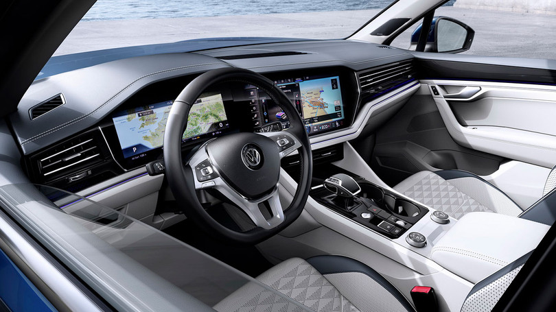 Với những gì mà Volkswagen Việt Nam tiết lộ, VW Touareg 2019 sẽ có một nội thất cực kỳ cao cấp và hiện đại với màn hình kép liền mạch từ khu vực bảng đồng hồ cho tới bảng điều khiển trung tâm. Volkswagen gọi đó là Innovision Cockpit.