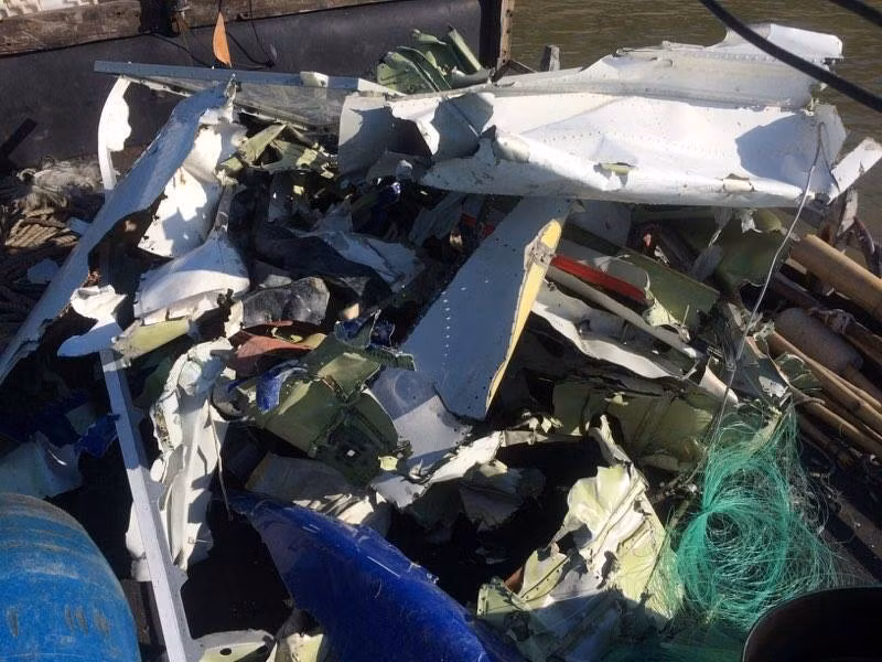 Tiếp đó, tàu của anh Lê Văn Hạnh (thôn Linh Trường) cũng vớt được nhiều mảnh vỡ của máy bay.