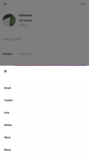Tính năng mới thứ hai, đó là chặn người dùng. Người dùng VSCO hiện đã có thể chặn người dùng khác truy cập vào profile cá nhân dễ dàng. Để chặn người dùng khác, bạn sẽ cần truy cập vào profile (hồ sơ cá nhân) của người dùng đó, nhấn Menu và chọn Block ở dưới cùng. Khi chặn thành công một người dùng, họ sẽ không thể nào tương tác được với bạn, dù cho các bức ảnh của bạn vẫn được công khai trên cộng đồng.