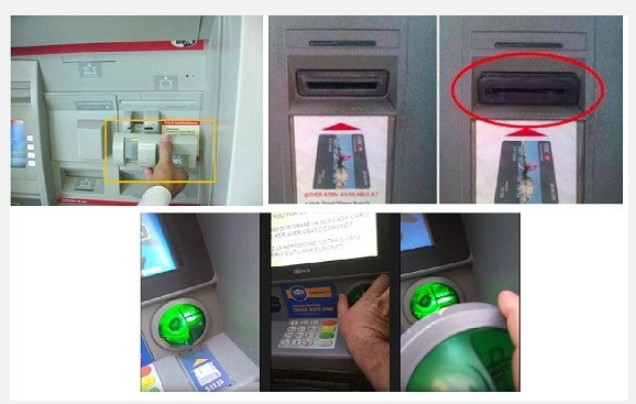 - Quan sát cây ATM xem có sự bất thường nào không, có bị gắn thiết bị lạ ở khe cắm thẻ, bàn phím... và các khu vực xung quanh không