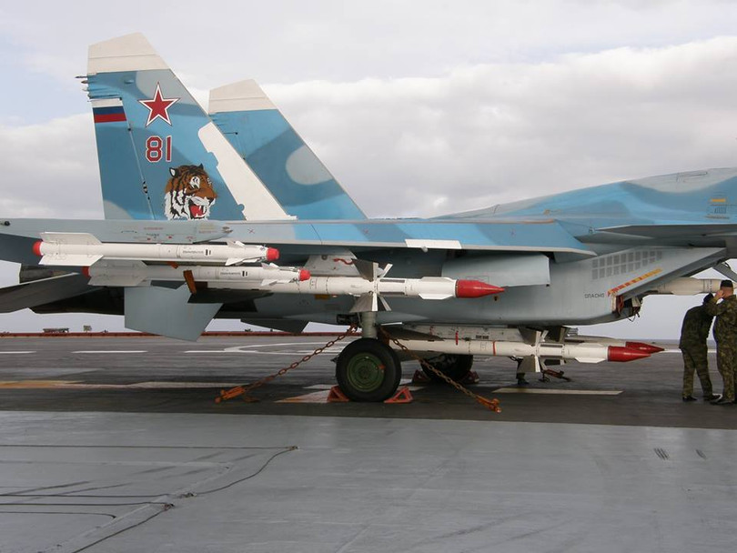 Theo những hình ảnh được đăng tải trên Al Masdar News, Đô đốc Kuznetsov mang theo các máy bay chiến đấu Su-33 và trực thăng hải quân Ka-31.