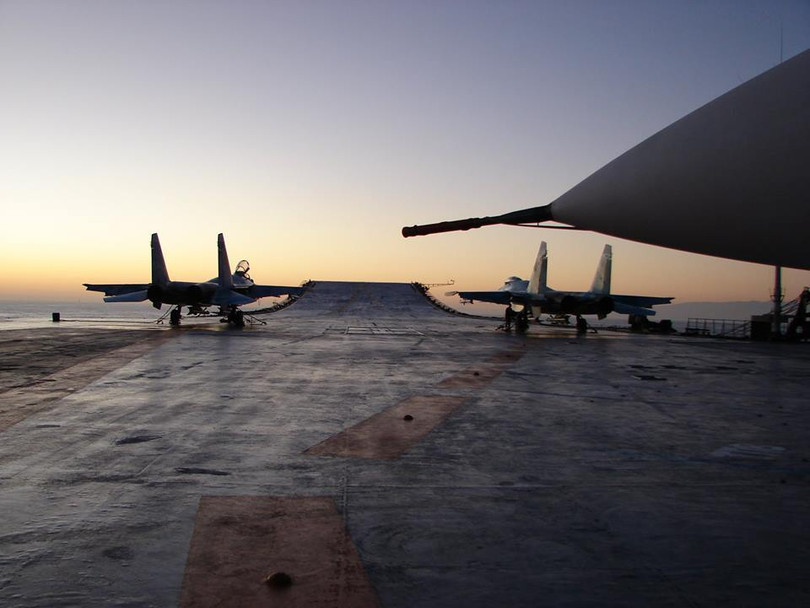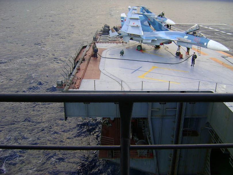 Những bức ảnh được chụp trên tàu cho thấy các máy bay chiến đấu Nga sẽ hiện diện trên vùng nước Địa Trung Hải, tăng cường sức mạnh cho các cuộc không kích vào IS và Jabhat Fateh Al-Sham (nguyên Al-Nusra Front – chi nhánh Al Qaeda Syria).