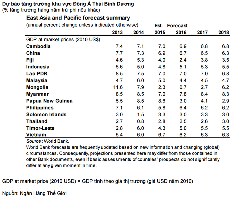 Trong đó, Ngân hàng Thế giới đánh giá triển vọng của Khu vực Đông Á và Thái Bình Dương cụ thể như sau: