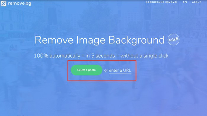 Để tách nền ảnh một cách nhanh chóng và không cần dùng đến Photoshop, người dùng cần truy cập vào trang web có tên remove.bg. Trang web này có giao diện đơn giản, dễ sử dụng. Bước đầu tiên, người dùng có thể tải trực tiếp hoặc dán link hình ảnh lên trang web.