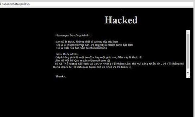 Cùng thời điểm này, trên Facebook một số người đã đăng ảnh trang chủ của website sân bay Tân Sơn Nhất bị thay đổi giao diện. Hacker đã để lại dòng chữ “anh DHS Mỹ đẹp trai”.