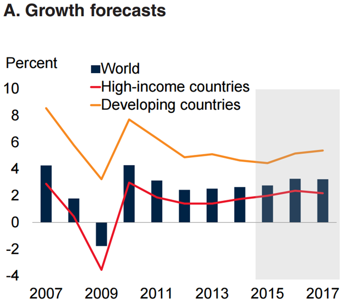 Các nước thu nhập cao sẽ tăng trưởng 2% năm nay, sau đó tăng lên 2,4% năm 2016 và 2,2% năm 2017, Ngân hàng Thế giới đánh giá.
