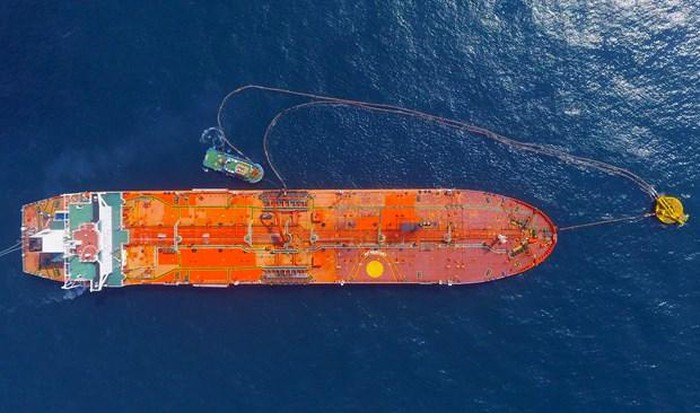 Sau khi tiếp cận được tàu Mercury, tàu dịch vụ sẽ lai kéo hai ống dầu khổng lồ từ phía phao SPM lên trên boong tàu Mercury. Công việc lắp ống vào đầu van sẽ có khoảng 10 người tham gia, gồm công nhân, kỹ sư, giám sát an toàn và lái cẩu. Từ phao SPM, dầu thô sẽ đi ngầm dưới biển 3,2km, đi ngầm trên đất liền 1,2km trước khi bơm vào 8 bể dầu thô của nhà máy lọc dầu Dung Quất. Đây là khâu đầu tiên trong rất nhiều công đoạn phức tạp để sản xuất xăng dầu của nhà máy lọc dầu Dung Quất.