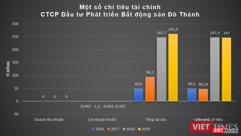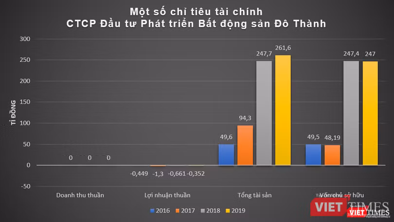 Do vẫn trong quá trình đầu tư và phát triển dự án nên Đô Thành chưa ghi nhận doanh thu. Trong giai đoạn 2016 - 2019, công ty này báo lỗ thuần vài trăm triệu đồng mỗi năm, cao nhất là năm 2017 lỗ thuần ở mức 1,3 tỉ đồng.
