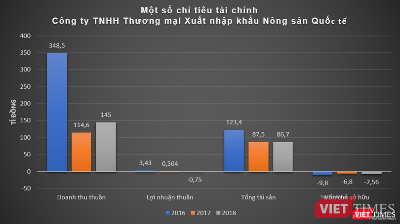 Dữ liệu của VietTimes cho thấy, trong giai đoạn 2016 - 2018, Nông sản Quốc tế có kết quả kinh doanh chưa thật sự tốt, biên lợi nhuận ở mức rất mỏng. Như năm 2016 và 2017, công ty này ghi nhận doanh thu thuần đạt lần lượt 348,5 tỉ đồng và 114,6 tỉ đồng, báo lãi thuần 3,43 tỉ đồng và 504 tỉ đồng, tương ứng với biên lợi nhuận 0,44% và 0,98%.