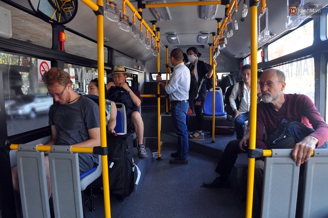 Tiếp tục cuộc hành trình ngược lại từ sân bay về trung tâm Sài Gòn, hành khách vẫn ở mức lèo tèo, trung bình từ 10 - 11 người/chuyến. Khách chủ yếu vẫn là người nước ngoài, chỉ số ít khách là người Việt trên các tuyến xe buýt này.
