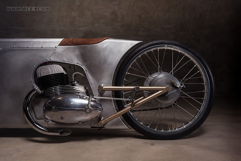VietTimes -- Chiếc xe thuộc sở hữu của xưởng Urban Motor (Đức), có phôi độ chấp vá từ hai mẫu xe Jawa 350 đời 1964 và Yamaha XJRs. Thiết kế khối liền mạch khá giống với một chiếc smart-phone mong manh với trọng lượng chỉ 90kg, nhưng xe độ nàylại được nâng cấp phần động cơ lên đến 1200cc.