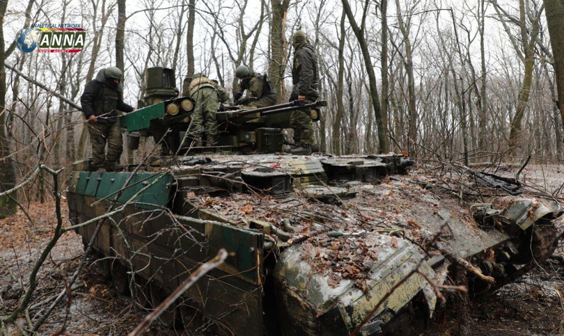 | Ảnh video ANNA News xe thiết giáp yểm trợ hỏa lực xe tăng. |