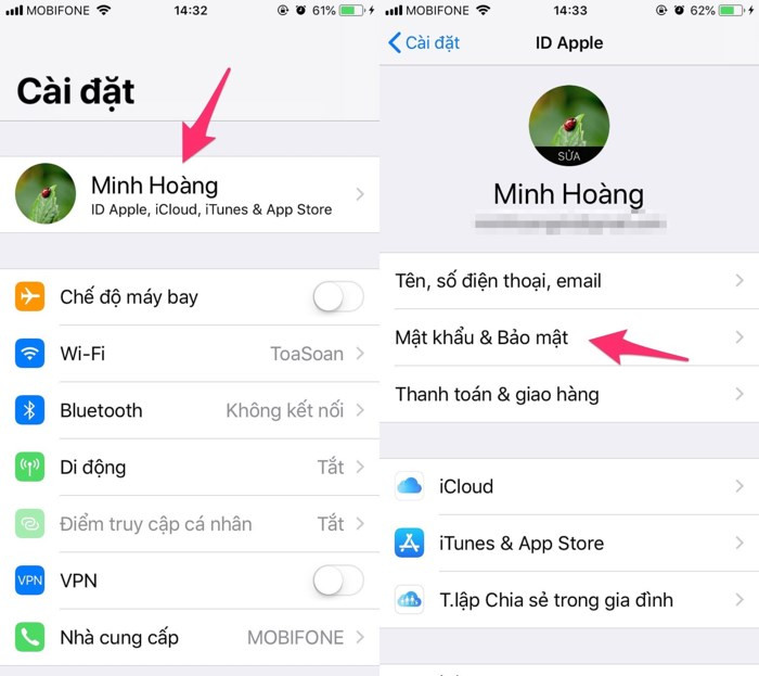 Kể từ lúc này, mỗi khi bấm vào tên tài khoản trên iPhone và chọn thay đổi mật khẩu, thiết bị sẽ yêu cầu người dùng nhập mã bảo mật nếu đã kích hoạt chức năng xác thực hai lớp hoặc nhập lại mật khẩu iCloud cũ thay vì chỉ nhập mật khẩu khóa màn hình như trước.
