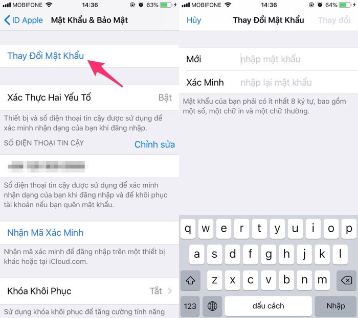 Khi thử truy cập vào phần Settings (cài đặt), bấm vào tên tài khoản và chọn Password & Security (mật khẩu & bảo mật) > Change Password (thay đổi mật khẩu). Người dùng có thể đổi được mật khẩu iCloud ngay lập tức mà không cần nhập lại mật khẩu cũ để xác thực?
