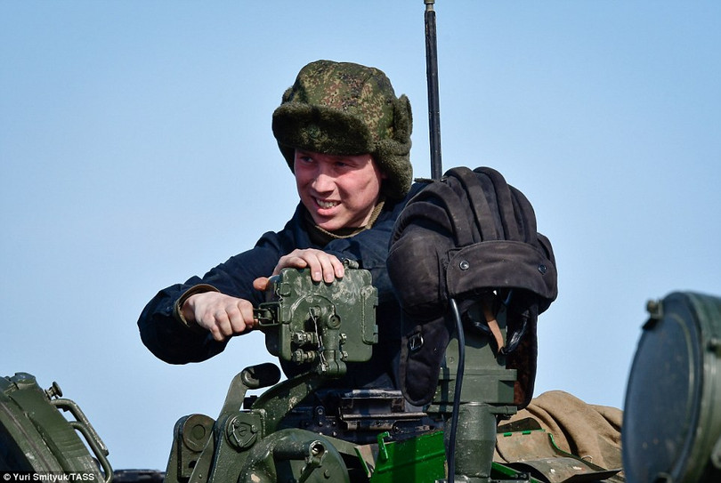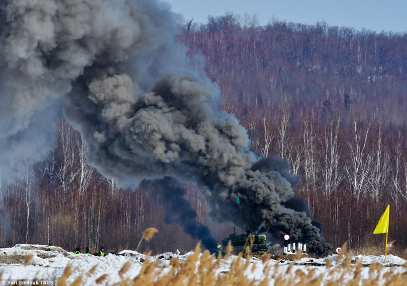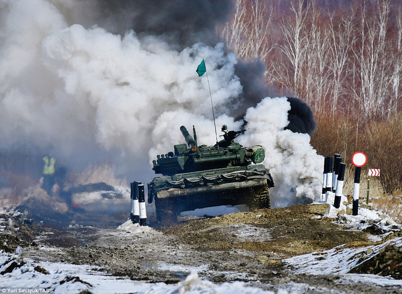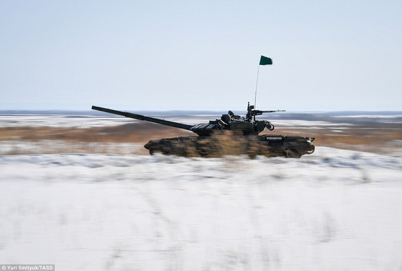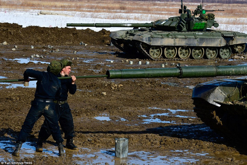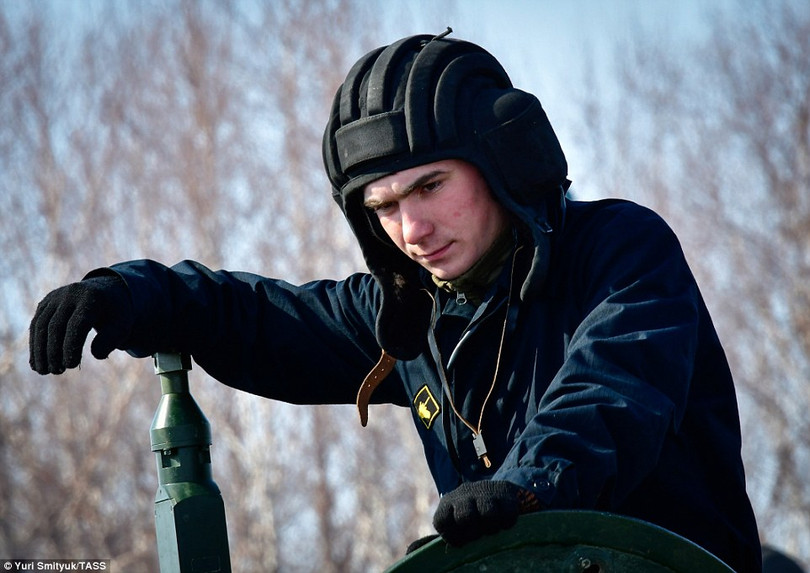 Các kíp xe tăng Nga đang tham gia trong một cuộc thi vòng loại thuộc quân khu phía đông tại thao trường Anastasyevsky trong ngày 12.03.2017, chuẩn bị cho giải đấu tăng quốc tế năm 2017.