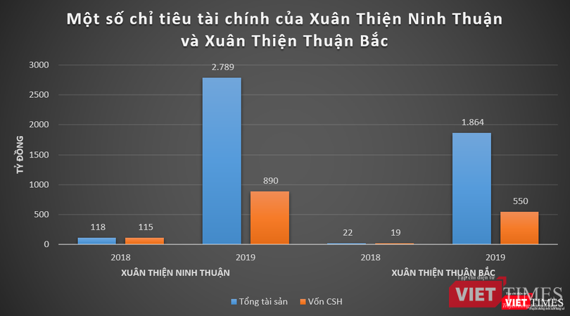 Trong 2 năm trở lại đây, cả Xuân Thiện Ninh Thuận và Xuân Thiện Thuận Bắc đều chưa phát sinh doanh thu và lợi nhuận; tổng tài sản và vốn chủ sở hữu cùng tăng mạnh.