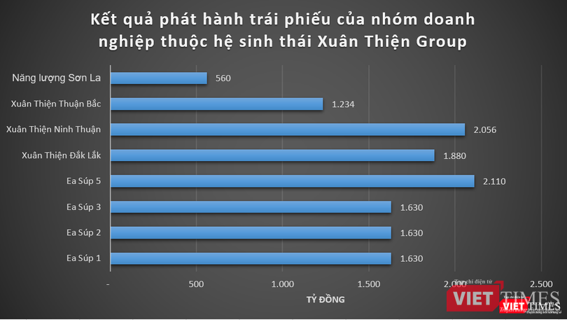 Ngoài nhóm công ty Ea Súp, Công ty TNHH Xuân Thiện Đắk Lắk (Xuân Thiện Đắk Lắk) cũng thu về 1.880 tỷ đồng qua kênh trái phiếu vào ngày 18/8/2020. Đây là lô trái phiếu có kỳ hạn từ 7-12 năm.