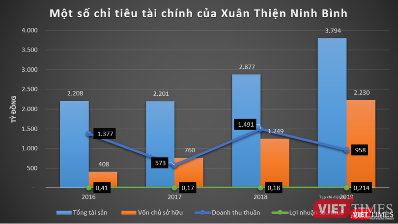 Năm 2019, doanh thu thuần của Xuân Thiện Ninh Bình đạt 958 tỷ đồng, giảm 36% so với năm trước; lãi sau thuế ở mức 214 triệu đồng, trong khi năm 2018 cũng chỉ lãi 180 triệu đồng.