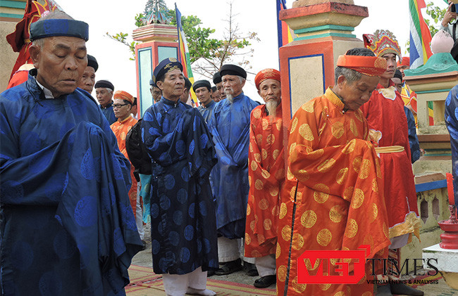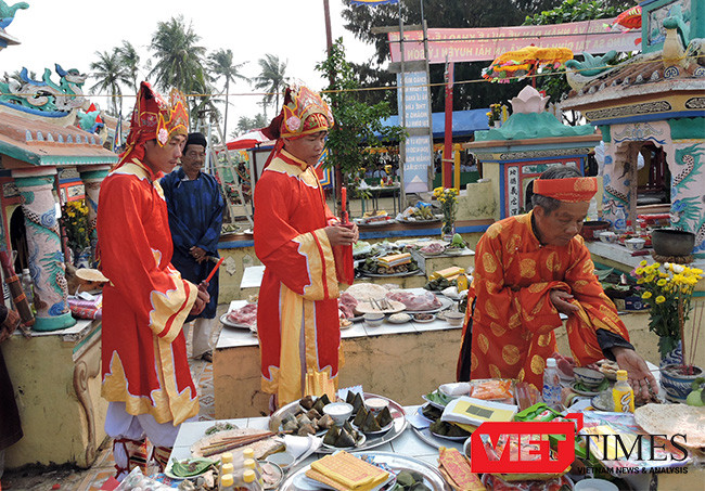 Bắt đầu bằng những hồi trống rộn ràng, các bậc cao niên trong làng đứng lễ tế cùng những vật phẩm địa phương, nhằm tri ân những người đã ngã xuống vì 2 quần đảo Hoàng Sa-Trường Sa cũng như cầu mong cho mưa thuận, gió hòa đối với người dân nơi đảo tiền tiêu Lý Sơn.