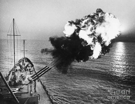 Các chiến hạm, được trang bị các tổ hợp pháo 127 mm và tên lửa không điều khiển (rockets) tiến hành yểm trợ hỏa lực pháo kích từ khoảng cách 25 đến 30 km. Sau khi chiến hạm chiếm vị trí chiến đấu, thuyền trưởng kết nối liên lạc với đài quan sát và chỉ thị mục tiêu trên tàu. Từ đài quan sát trên chiến hạm, thông tin về số hiệu mục tiêu, tính chất mục tiêu, tọa độ mục tiêu, số lượng đạn cần thiết và thời gian tiêu diệt mục tiêu.