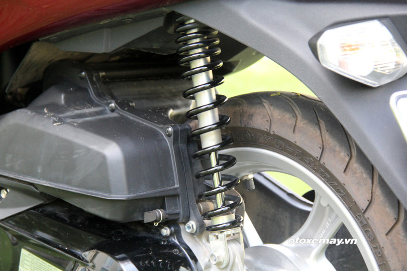 Janus cặp vành hợp kim 14 inch, kết hợp với lốp không săm. Lốp trước kích thước 80/80 và lốp sau 110/70. Trong khi đối thủ dùng lốp trước 80/90 và lốp sau 90/90.