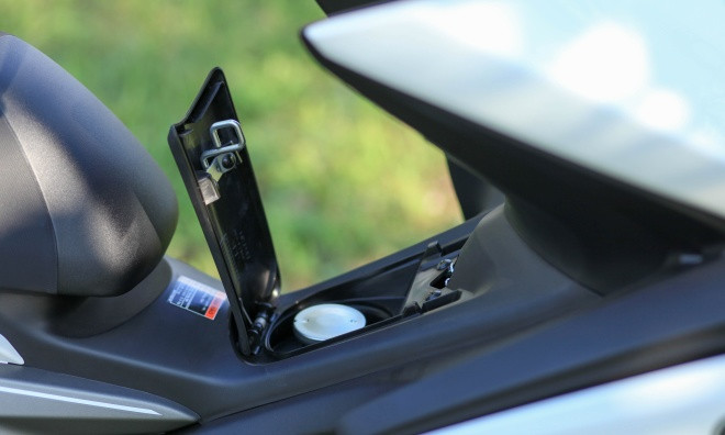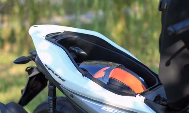 Hộc chứa đồ dưới yên xe có khả năng chứa mũ bảo hiểm cả đầu và nhiều vật dụng cá nhân khác.