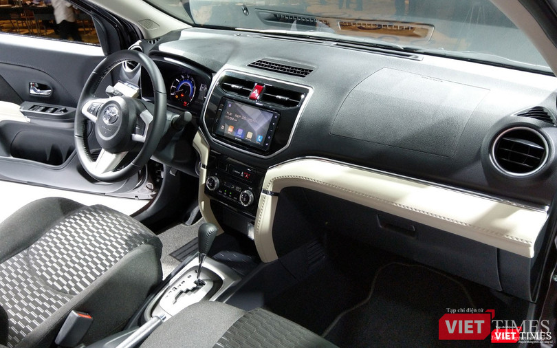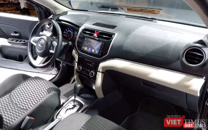 Những trang bị nổi bật được tìm thấy Toyota Rush gồm hệ thống điều hòa tự động 2 giàn lạnh, nút bấm khởi động, cụm đồng hồ với màu sắc bắt mắt, hệ thống giải trí với màn hình cảm ứng 7 inch tích hợp camera lùi và có cổng kết USB/AUX/Bluetooth/Wifi. Tuy nhiên, nó lại không có tính năng kiểm soát hành trình Cruiser Control như trên Xpander.