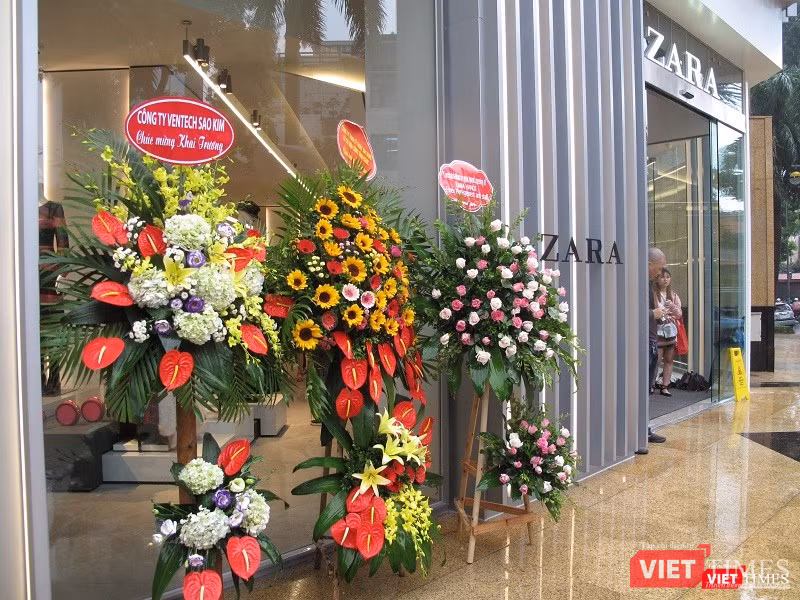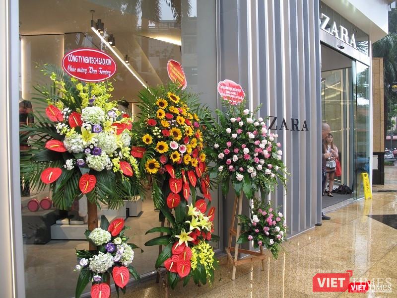 Lẵng hoa chúc mừng của các đối tác gửi đến cửa hàng của Zara.