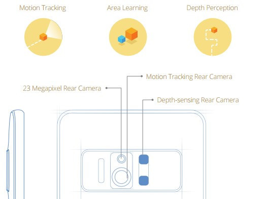 Bên cạnh đó, để tối ưu tính năng Google Tango - cho phép quét và dựng một bản đồ 3D của mọi vật thể trong không gian ảo xung quanh người dùng, mặt sau Zenfone AR cũng được tăng cường cả camera theo dõi chuyển động và camera ghi nhận độ sâu vật thể. Asus cho biết hiện có khoảng 35 ứng dụng AR cài sẵn trong máy.